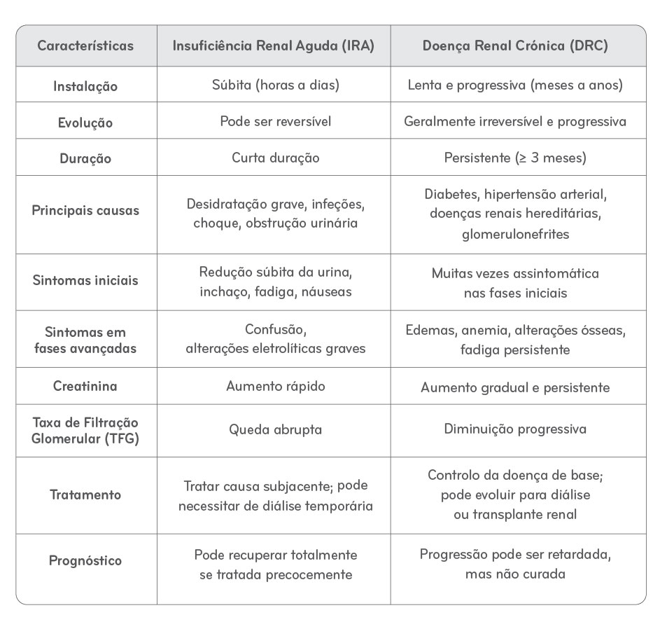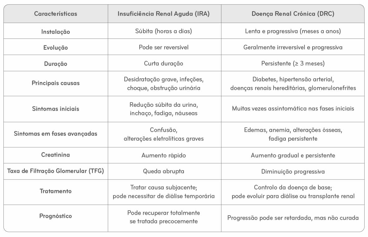 A Insuficiência Renal Aguda aparece de forma brusca (numa questão de dias ou horas), tendendo normalmente a recuperar.